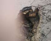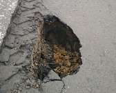 А недавно пользователи соцсетей поделились фотографиями проезжей части Тургеневского моста. Дыра в асфальте уходит на добрых тридцать сантиметров вглубь, на дне виден промокший песок. Рядом — след, судя по всему, от уборочной техники. «Портал в ад», — грустно комментирует снимки автор.