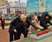 В сквере Танкистов прошёл Митинг памяти. Участие в нём приняли почётный гость - многоуважаемый ветеран Великой Отечественной войны Абрам Израилевич Миркин, а также чиновники, ученики гимназии №39 и школы №27.