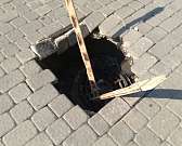 В Орле на улице Ленина провалился люк, под которым находится ливневая канализация. Фотографии опубликовал экс-депутат горсовета Владимир Симонов.