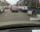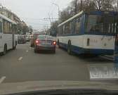 Также авария внесла коррективы в движение электротранспорта: троллейбусы выстроились в ряд, что еще больше усугубило пробку.