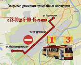 Сегодня с 23 часов до 5 утра 15 июня будет закрыто движение трамваев 1 и 3 на участке от остановки «Трамвайно-троллейбусное предприятие» до конечной остановки «Завод «Химтекстильмаш». В это время они будут ходить от остановки «ТТП» до кольца ул. Пушкина и Железнодорожного вокзала. Причина — капитальный ремонт трамвайного пути. В связи с этим 14 июня с 6 до 23 часов по маршруту «Автовокзал — завод «Химтекстильмаш» будут ходить дополнительные автобусы. Расписание их движения будет вывешено на конечных остановках.