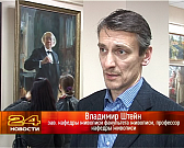 ((Владимир Штейн заведующий кафедрой живописи факультета живописи, профессор кафедры живописи факультета живописи, член-корреспондент Российской Академии Художеств - мы их упаковываем, заказываем машины и медленно перевозим.)) ((Директор: мы ждали эту выставку...)) Название выставки "Ступени мастерства" отражено и в расположении работ, которые разделены на четыре зала, каждый из них соответствует курсу обучения студентов. Это помогает зрителю увидеть, как ученик становится художником. Свои работы студенты выполняют в традициях мастеров прошлого и отражают религиозные сюжеты, события русской истории.