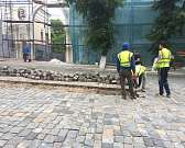Около получаса назад строители начали разбирать брусчатку на улице Ленина. Рабочие ломом выкапывают камни и складывают здесь же, на улице Ленина. Такие строительные работы сразу же привлекли большое внимание общественности и прессы, так как орловчанам после акций протеста обещали брусчатку не трогать. Как пояснил инженер фирмы-подрядчика, делается это для того, чтобы провести ливневую канализацию посреди улицы. Подробности в ближайшем выпуске программы "Оперативный эфир".
