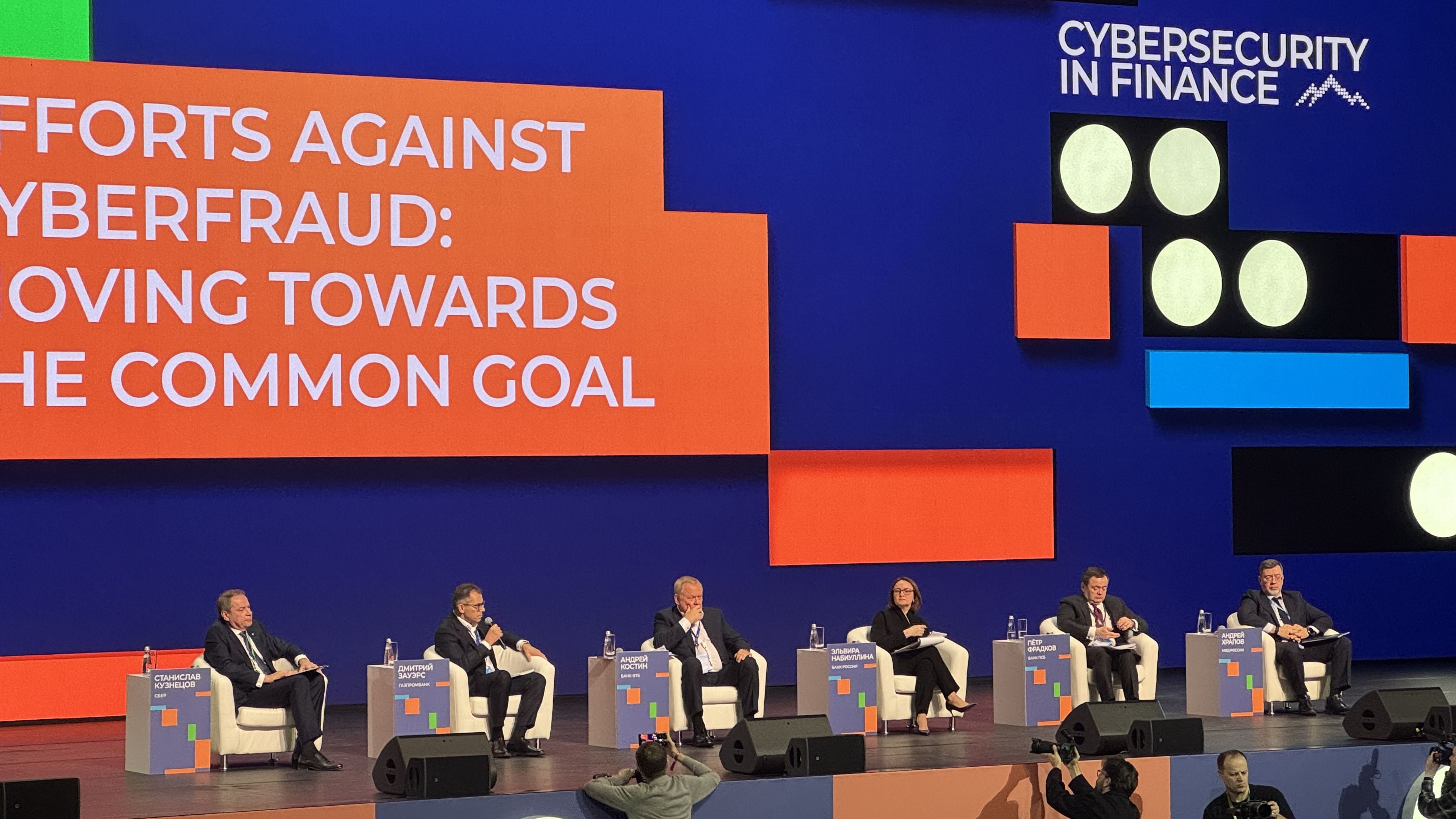 Модерировала дискуссию Председатель Центрального Банка России Эльвира Набиуллина. Участие в сессии приняли заместитель Министра внутренних дел РФ Андрей Храпов, Председатель Правления Банка ВТБ Андрей Костин, заместитель Председателя Правления Газпромбанка Дмитрий Зауэрс и Председатель Промсвязьбанка Пётр Фрадков.