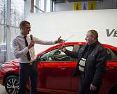 В рамках презентации прошло торжественное вручение ключей от Vesta первому покупателю новинки в ДЦ LADA БН-Моторс Сергею Алимову. Он получил памятный сертификат и подарки от дилера.