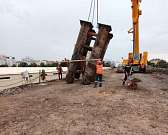Также параллельно выполняется переустройство сетей водоснабжения. Траншея для устройства нового трубопровода разработана на 90%, сейчас ведётся пайка труб.