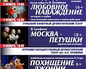 Курский драматический театр им. А. С. Пушкина выступит на орловской сцене 17 ноября с ковбойской историей «Похищение Джонни» (6+) и лирической комедией «Пришел мужчина к женщине» (16+).
