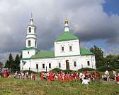 Начался праздник с божественной литургии в храме Святой Живоначальной Троицы. Далее прошло шествие творческих коллективов и казаков на центральной площадке.