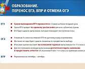 На слайдах представлена информация о федеральных и региональных мерах государственной поддержки бизнеса, семей с детьми, безработных, информация о переносе ЕГЭ, ВПР и отмене ОГЭ.