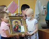 Глава Русской Православной Церкви преподнес больнице в дар икону Божьей Матери. Дети вручили ответный подарок - икону Вседержителя, которую вышила бисером орловчанка, ребенок которой уже год борется с болезнью.