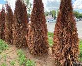 Напомним, что в рамках благоустройства площади Жукова в 2021 году по части периметра были посажены взрослые туи. Удовольствие не из дешевых. Но вскоре обнаружилось, что более половины из них засохло. Чиновники списывали это на вандализм и намеренное повреждение деревьев.