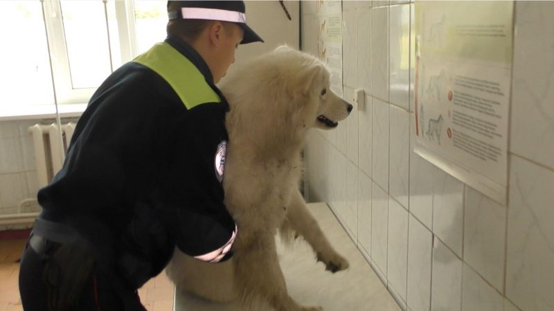Сотрудники ГИБДД бережно взяли собаку и погрузили в автомобиль. Увидев проходящую мимо женщину, полицейские уточнили, не знает ли она, кто хозяин пса. Они попросили ее помочь в его поисках, так как сами, не теряя драгоценного времени, повезли собаку в ветеринарную клинику.