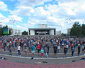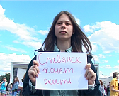 населения Юго-Востока Украины. В одну минуту около тысячи участников упали «замертво», символизируя таким образом человеческие смерти в ходе карательной операции, которую проводит власть Украины против своих граждан.