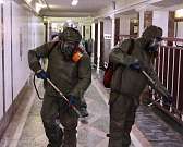 Дезинфекцию спасатели проводят с помощью спецтехники. В качестве антисептиков используются хлорсодержащие средства. Одно из них — гипохлорит натрия. Он широко используется в противовирусной сфере, а активность проявляется в момент нанесения: активный хлор оказывает разрушающее воздействие на инфекции.