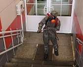 Всего силами специализированной пожарно-спасательной части МЧС было обработано более 14 000 квадратных метров. Это лестницы, переходы, помещения, кабинеты, платформы.