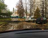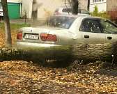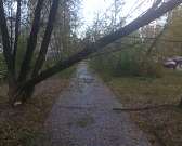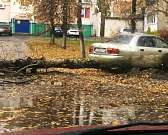 На улице Металлургов сухое дерево упало на автомобиль и смяло ему заднее крыло. Еще одно дерево свалилось поперек тротуара на ул. Рощинской.