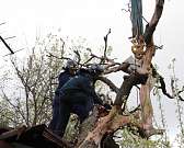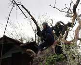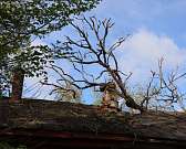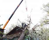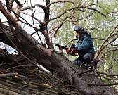 Во время непогоды на телефон службы спасения стали поступать звонки об отключении электроэнергии в населенных пунктах, падении деревьев и частичном повреждении кровель строений.