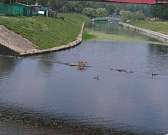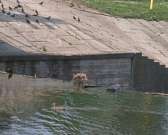 Пользователь vk.com Андрей Артемов разместил фотографии, на которых видно как под подвесным мостом в детском парке по реке гуляет лиса. Видимо ей очень надоело в лесу и она вышла прогуляться.