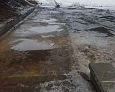 Невооруженным глазом видно, что парапет не пережил зиму: цемент из швов выкрошился, плиты расползаются и трескаются, а кое-где их вообще смыло в реку. Можно заметить попытки ремонта: некоторые щели в плитах заткнули деревяшками.