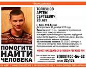 - Примерно около часа дня 30 декабря Артем Толкунов купил билет на железнодорожном вокзале Орла на электричку Орел-Малоархангельск, но в Малоархангельск так и не прибыл. Может передвигаться автостопом и находиться в любом регионе, - сообщают поисковики из отряда «Лиза Алерт Курск».