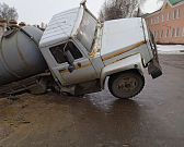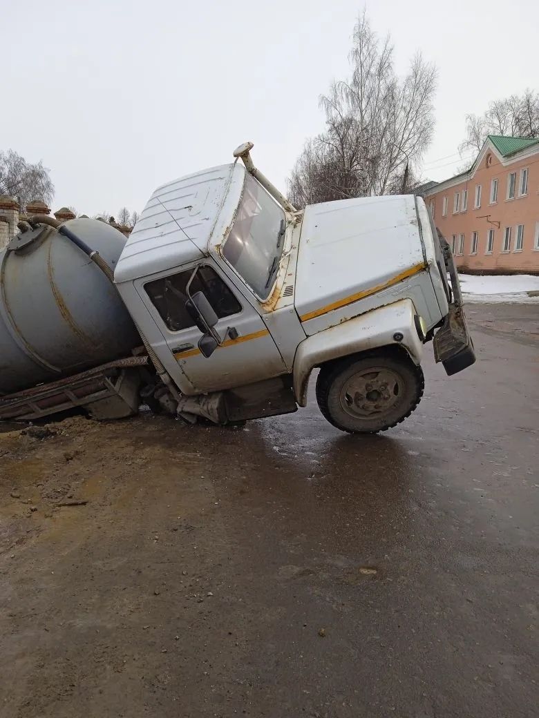 В Орле на улице Калинина произошёл неординарный инцидент: ассенизаторская машина провалилась под землю прямо на проезжей части. По словам очевидцев, ситуация выглядела крайне впечатляюще и даже пугающе — бак транспортного средства ушёл в образовавшуюся яму практически до уровня кабины.