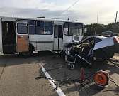На месте ДТП скончались мужчина и женщина, ехавшие в иномарке, ее водителя госпитализировали. Медики оказывают помощь двум пассажирам ПАЗа.