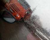 Днем на Новосильском шоссе не поделили дорогу фура и самосвал. Последний даже провалился под землю задними колесами.