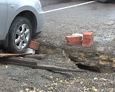 Фоторепортаж: в Орле «Ниссан» провалился под землю
