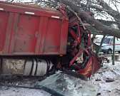 На фото видно, насколько сильно повредилась машина, и в частности - водительская кабина. Однако, по информации дежурного ГИБДД, водитель, к счастью, не пострадал. Он трезвый. На момент ДТП на остановке людей не находилось.