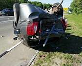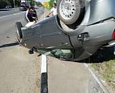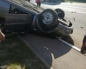 От сильного удара легковая машина перевернулись. Двое человек пострадали.