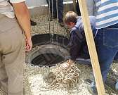 По словам очевидцев, в частном секторе велись работы, которые могли напугать животное. Лосиха не заметила открытый люк и упала в него.