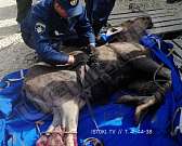 Наша съемочная группа работала на месте происшествия, где сотрудники МЧС развернули операцию по спасению животного. Для этого пришлось на время усыпить лосиху, которая не давалась людям.