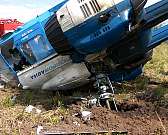 По словам одного из членов экипажа, после взлета машина пролетела около 6 км. После чего в воздухе у вертолета внезапно пропала тяга. Пилот увел машину от газопровода и домов и совершил аварийную посадку на безлюдном лугу. После контакта с землей стойка шасси вертолета подломилась и он опрокинулся на крышу. К счастью, возгорания не произошло.
