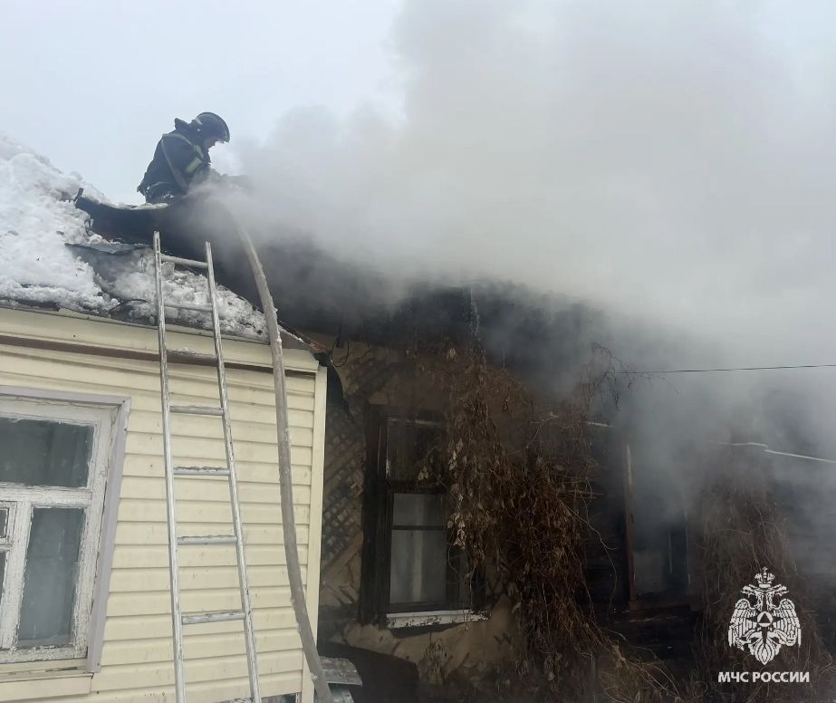 Сегодня в 8.10 на телефон 101 поступило сообщение о возгорании в жилом доме на двух хозяев на улице 1-я Пушкарная в Орле. На момент прибытия пожарных горела кровля по всей площади. Существовала угроза распространения огня на соседние строения.