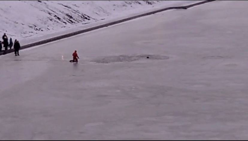 Сегодня в районе Набережной Дубровинского спасали собачку и выбежавшего за ней хозяина