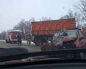Судя по снимкам, столкнулись «Камаз» и легковушка.