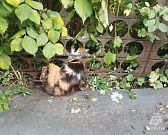 Трехцветный кот, гуляя в районе улицы 1-ой Бутуровки в городе Ливны, где-то лапой поймал капкан, а затем, раненный, спасаясь от собак, бежал и застрял в заборе.