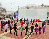 Поучаствовать в спортивных соревнованиях могли и самые маленькие участники праздника. Вместе с Дедушкой Морозом они водили хоровод, где нужно было приседать, прыгать и даже отжиматься.