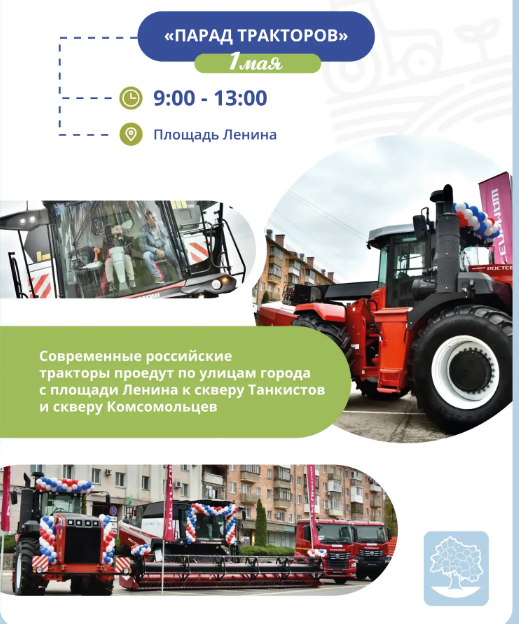 Впервые в нашем городе пройдет «Парад тракторов»: современная техника отечественного производства организованно проедет от площади Ленина по центральным улицам Орла.
